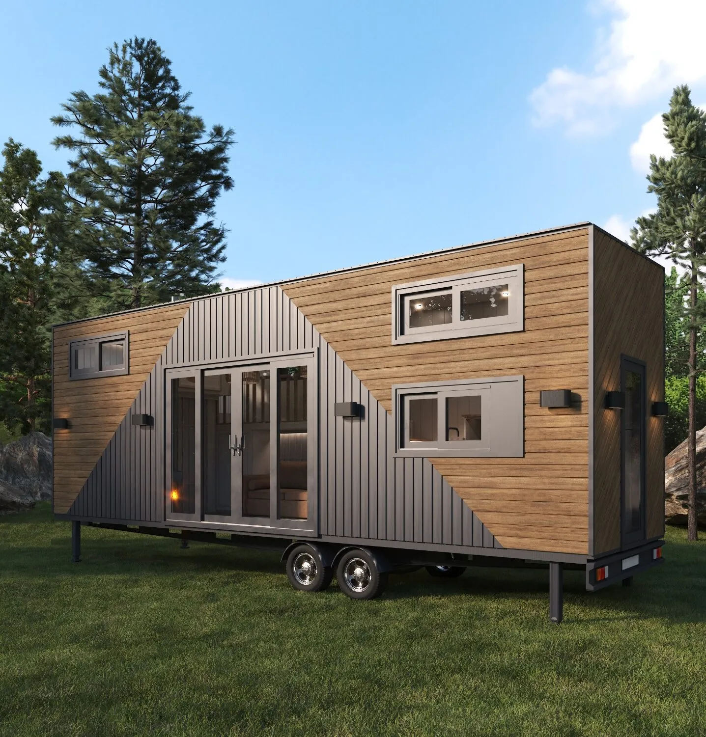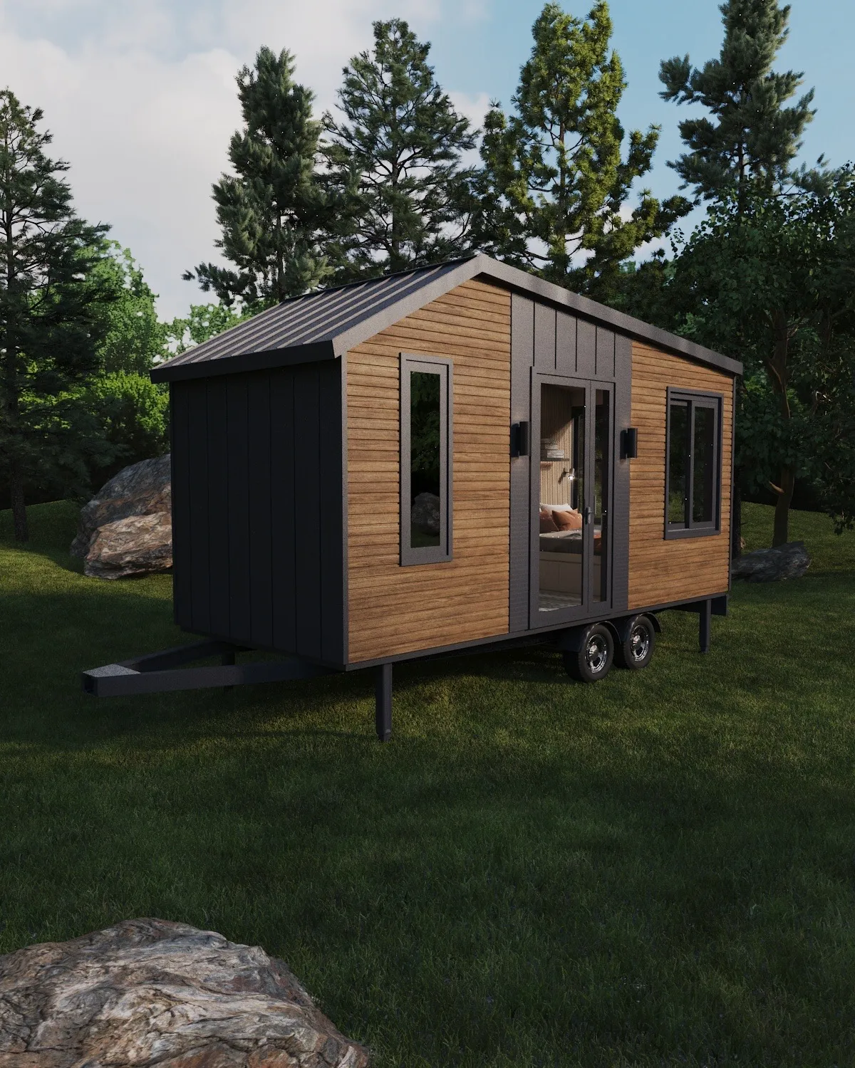 Ruby, a Tiny House model with a distinctive design by Da’Tiny Homes, strikes a perfect equilibrium between aesthetics and functionality. Tailored for individuals who embrace minimalist living and seek modern comforts within a compact dwelling.Ruby’s standout design encompasses expansive interiors, thanks to its large glass windows and open-plan layout. With clever storage solutions and adaptable furniture, Ruby presents a practical and elegant choice for those opting for life in confined spaces.Crafted from resilient materials, this exclusive Tiny House model pioneers environmental sustainability and energy efficiency. Catering to those in pursuit of the lightness and liberation of modern living, Ruby stands as a singular and contemporary abode.