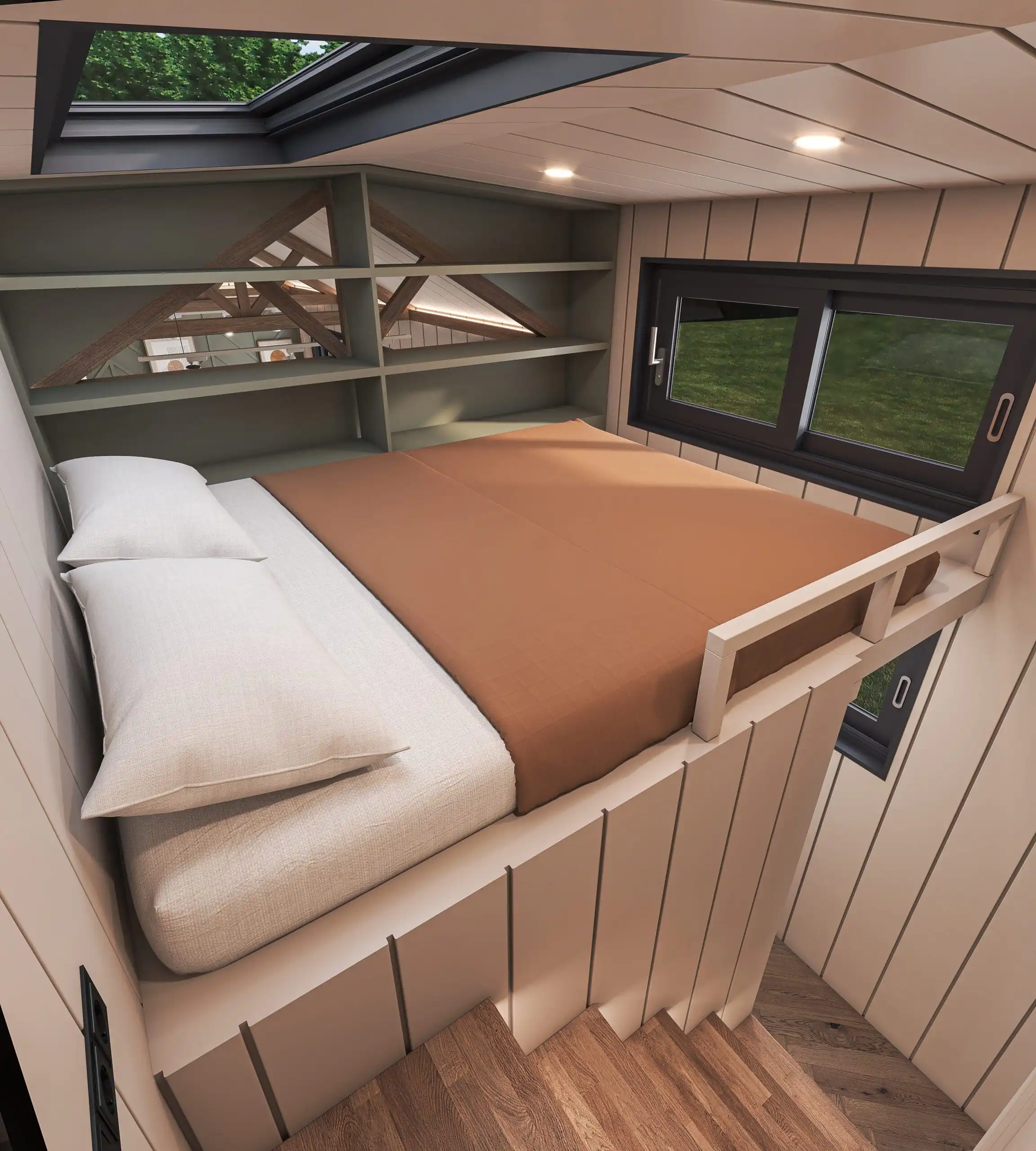 The Bella model tiny house is a stunning 36-foot long marvel of modern design, seamlessly blending style, functionality, and sustainability. Crafted with meticulous attention to detail, this tiny home offers an elegant living space that maximizes every square inch. Its contemporary aesthetic features clean lines, large windows, and a sleek exterior, creating a bright and inviting atmosphere inside.The interior is thoughtfully designed to include a spacious living area, a fully equipped kitchen, a cozy downstairs full bedroom, and a modern bathroom, all outfitted with high-quality finishes and smart storage solutions. The downstairs bedroom offers the convenience of easy access without the need for stairs, making it perfect for those who prefer single-level living. Additionally, the loft space provides versatile advantages: it can serve as a secondary sleeping area, a cozy reading nook, or extra storage, optimizing the home’s functionality.Perfect for those seeking a minimalist lifestyle without compromising on comfort and luxury, the Bella model tiny house is an ideal choice for modern living.